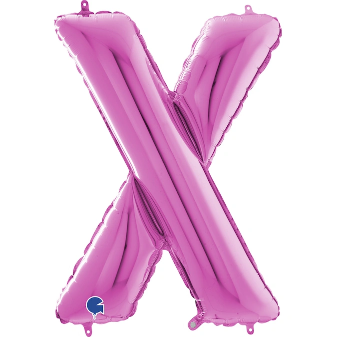 Fóliový balónek ve tvaru písmene X v růžové barvě. Balónek je ideální na oslavy, kde může znázornit spolu s dalšími písmeny jméno oslavence. Hodí se samozřejmně i na výročí a různé oslavy.