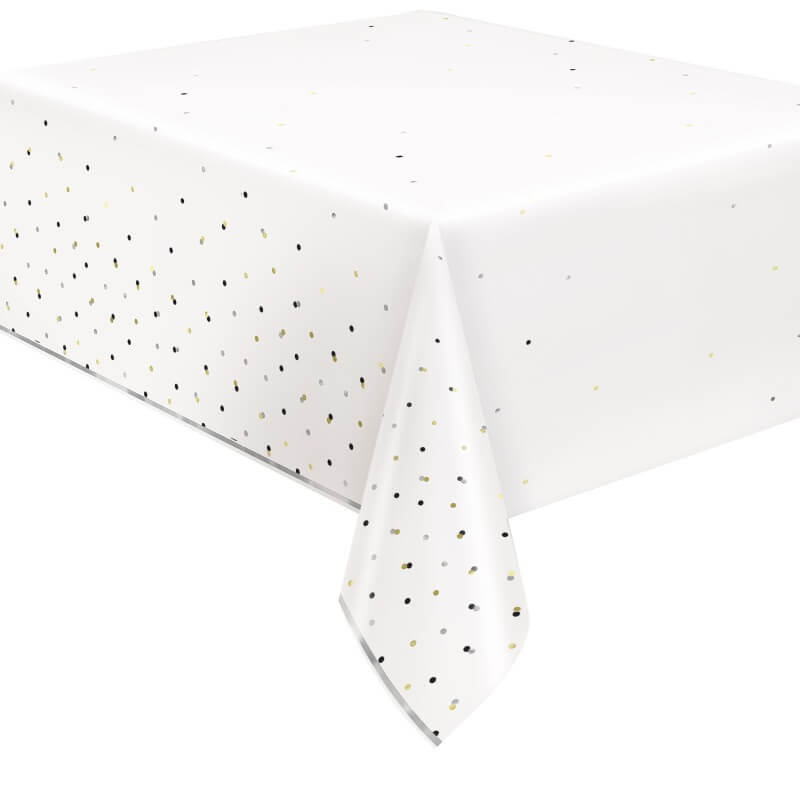 Plastový ubrus bílý se stříbrno-zlatými puntíky 137 x 274 cm