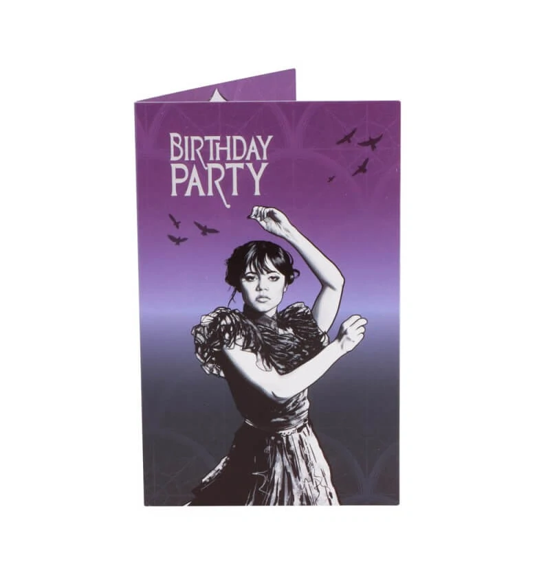 Ponořte se do tajmeného světa na Akademii Nevermore s hlavní hrdinkou Wednesday a proměňte svůj velký den na temnou tématickou oslavu a párty. Pozvánky s Wednesday v černo-fialové barvě s předepsanými údaji vám usnadní organizaci a naladí hosty na téma vaší oslavy. Přinesou hrůzostrašnou náladu ještě dřív než uvidí, co bude na párty za dekorace. Promyslete každý detail do posledního a ohromte všechny.