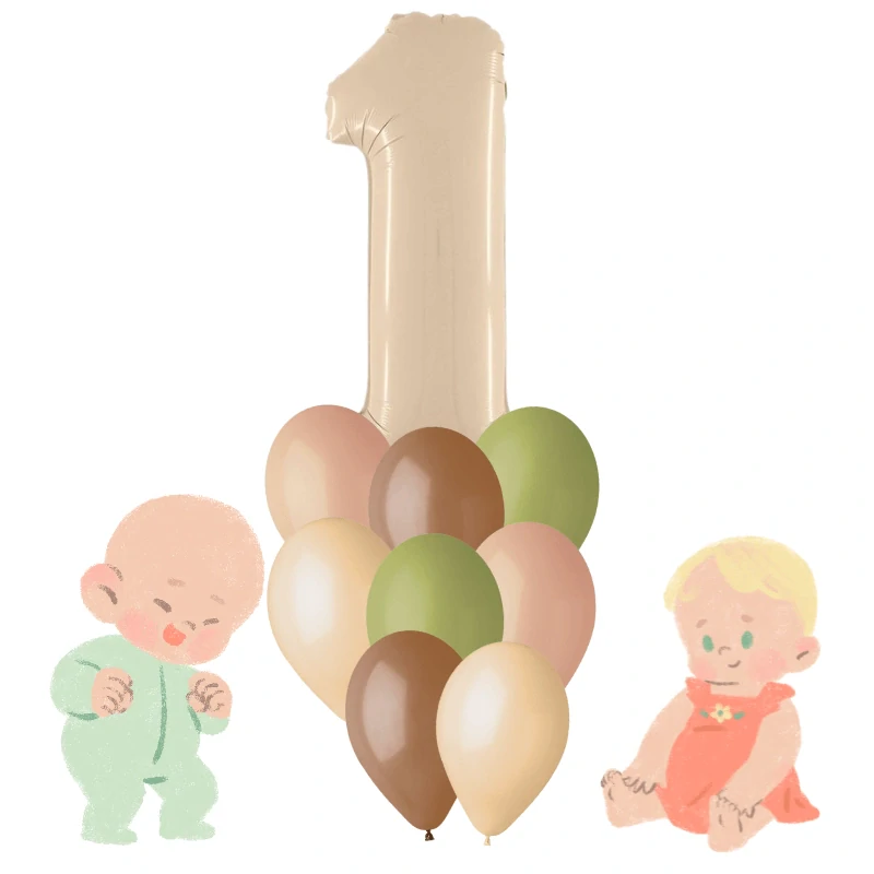 Sada balónků v neutrálních barvách s číslicí 1 je skvělou dekorací na první narozeninovou oslavu, ať už malých holčiček nebo chlapečků. Tlumené barvy se staly velice oblíbenými a dodávají nenucenou eleganci, ale zároveň mohou působit hravě a dětsky. Konec přemrštěných křiklavých párty.