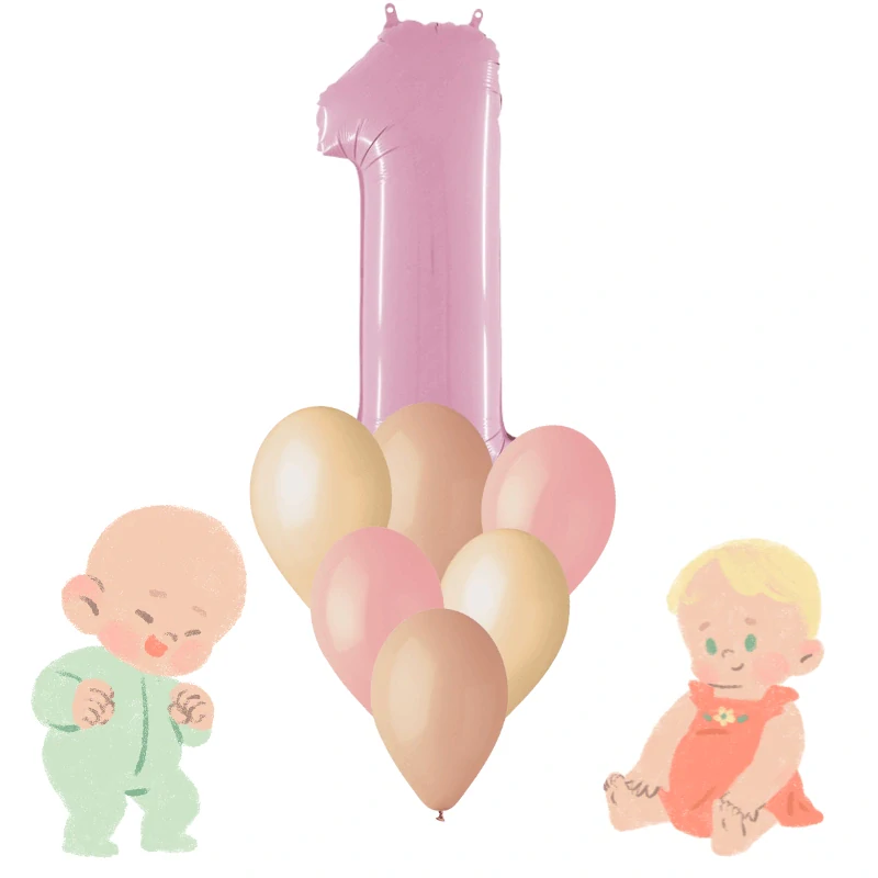 Sada balónků v neutrálních barvách s pudrově růžovým podtónem s číslicí 1 je skvělou dekorací na první narozeninovou oslavu malých holčiček. Tlumené barvy se staly velice oblíbenými a dodávají nenucenou eleganci, ale zároveň mohou působit hravě a dětsky. Konec přemrštěných křiklavých párty.