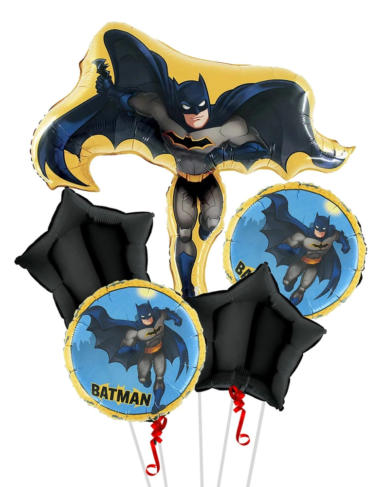 Balení obsahuje: 5 ks balónků (1 x 90 cm - Batman postavička, 2 x 45 cm hvězdy, 2 x 45 cm kulatý Batman).