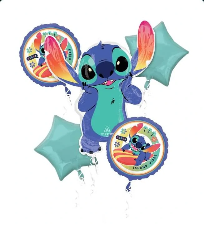 Vneste na svou oslavu trochu havajské pohody a vesmírné roztomilosti s touto sadou fóliových balónků Lilo a Stitch – Stitch. Hlavní hvězdou je velký balónek ve tvaru postavičky Stitche, která si získá srdce každého fanouška.