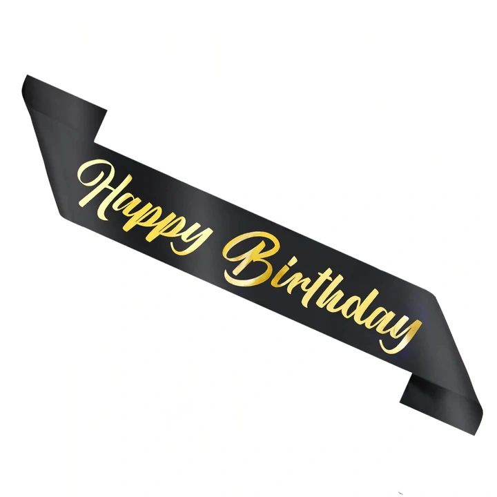 Šerpa Happy Birthday černá – elegantní doplněk oslavence pro každou příležitost