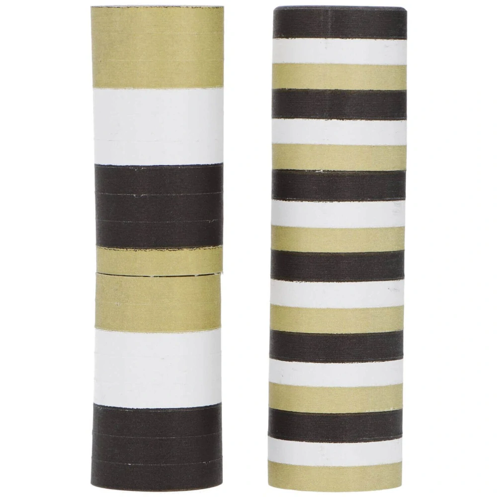 Ozdobte svou oslavu elegantně a hravě s těmito serpentinami v černo-zlato-bílé barevné kombinaci. Balení obsahuje 2 role s pásky, které můžete jednoduše odvinout a vytvořit tak efektní dekoraci během pár vteřin.