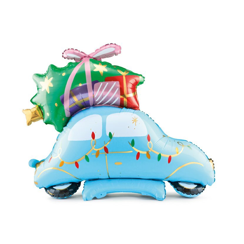 Stojící fóliový balónek vánoční autíčko. Lze nafukovat pouze vzduchem pomocí brčka nebo pumpičky na balonky. Krásná dekorace na vánoční večírek nebo párty.