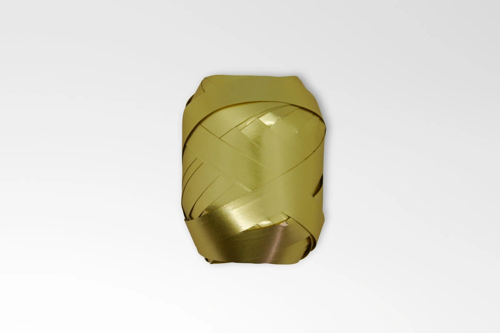 Metalická stuha, která slouží jako dekorace na dárky v barvě zlaté.