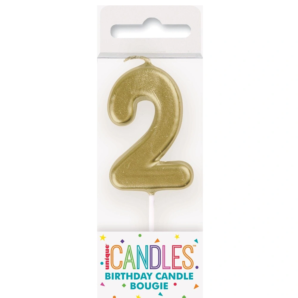 Svíčka ve tvaru číslice 2 ve zlaté barvě, 5cm velké.