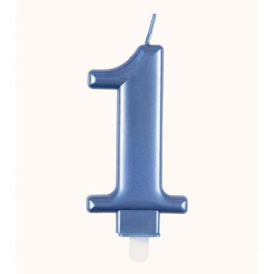 Metalická svíčka číslo 1 v tmavě modré barvě. Co nesmí chybět na narozeninovém dortu🎂? No přece svíčka, aby si mohl oslavenec něco přát! Kromě narozenin můžete svíčku využít na různá výročí.