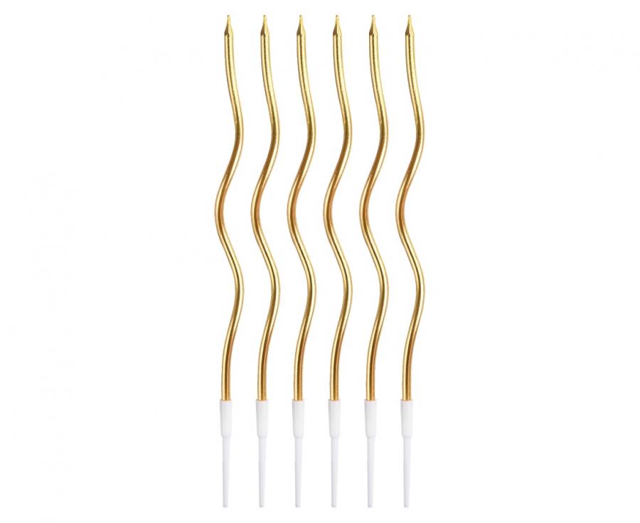 Elegantní dortové svíčky by neměly chybět na žádném narozeninovém dortu. Svíčky jsou spirálové, metalické zlaté barvy a dodávají neobvyklý vzhled. Vhodné na jakýkoliv druh oslavy, párty či večírku. Uděljte svůj dort jedinečným.