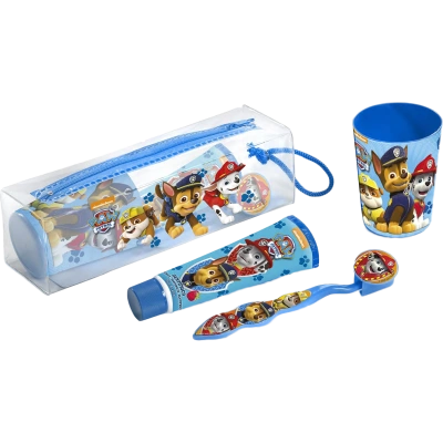 Set v pouzdru Tlapková Patrola pomůže, aby i čištění zoubků mohlo být zábavou.