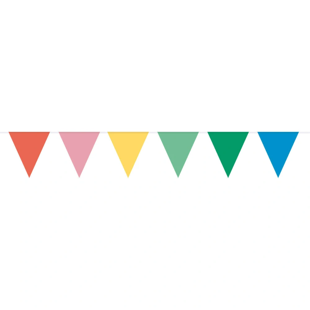 Krásně barevná vlaječková girlanda v pastelových barvách. Je možné ji využít například na narozeninovou party, nebo na různé zahradní party, či karnevaly.