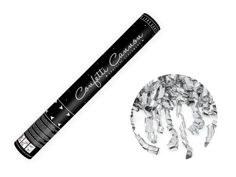 Vystřelovací konfety se stříbrnými serpentinami jsou perfektními doplňky pro silvestrovské party, narozeninové oslavy, svatby nebo maturitní plesy.