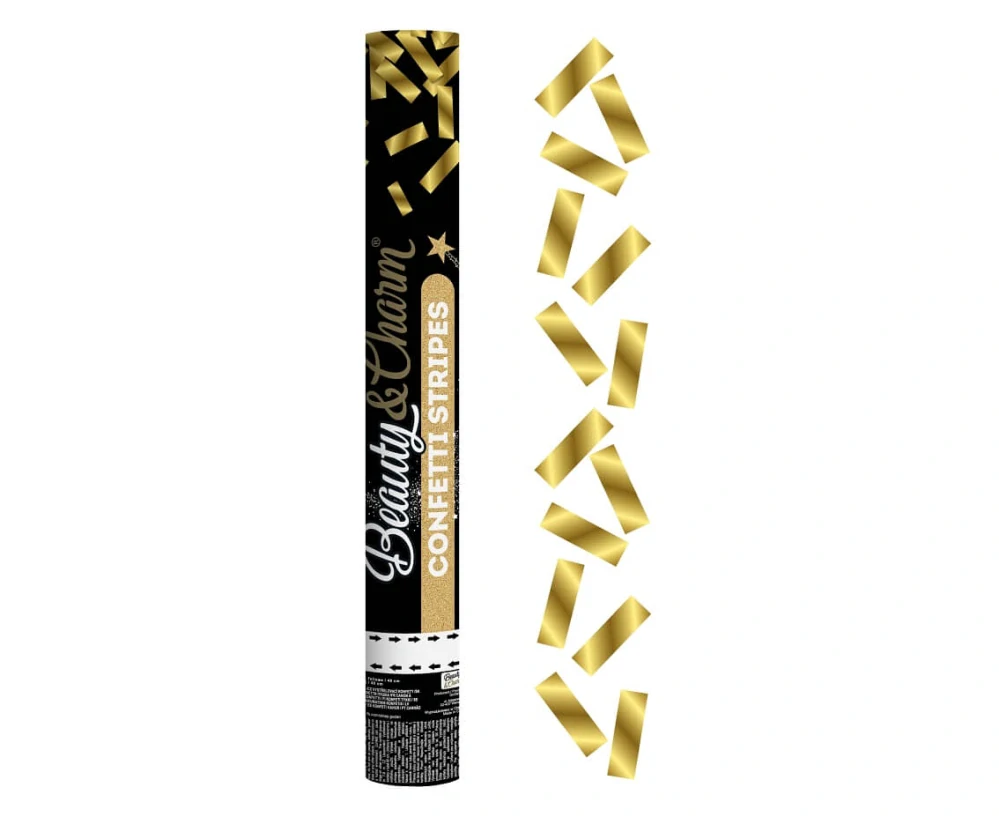 Vystřelovací konfety ve zlatém provedení. Překvapte oslavence výstřelem konfet na jeho narozeninové oslavě nebo s nimi jednoduše odstartuje Nový rok. Použití je jenom na vás!